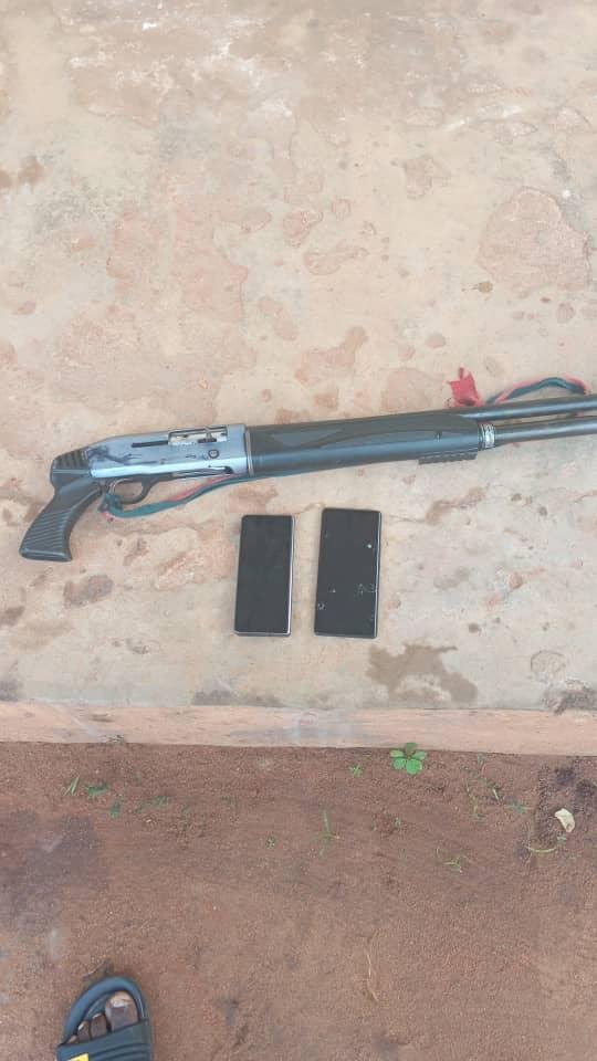 Police operatives recovered an automatic pump-action rifle and two mobile phones believed to be stolen property.